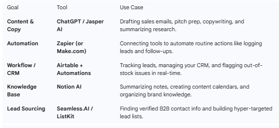 One of the biggest time-sinks for any CPG founder is the sales process—from initial outreach to persistent follow-up. AI can step in and automate these repetitive but crucial tasks, allowing you to focus on closing the deal.