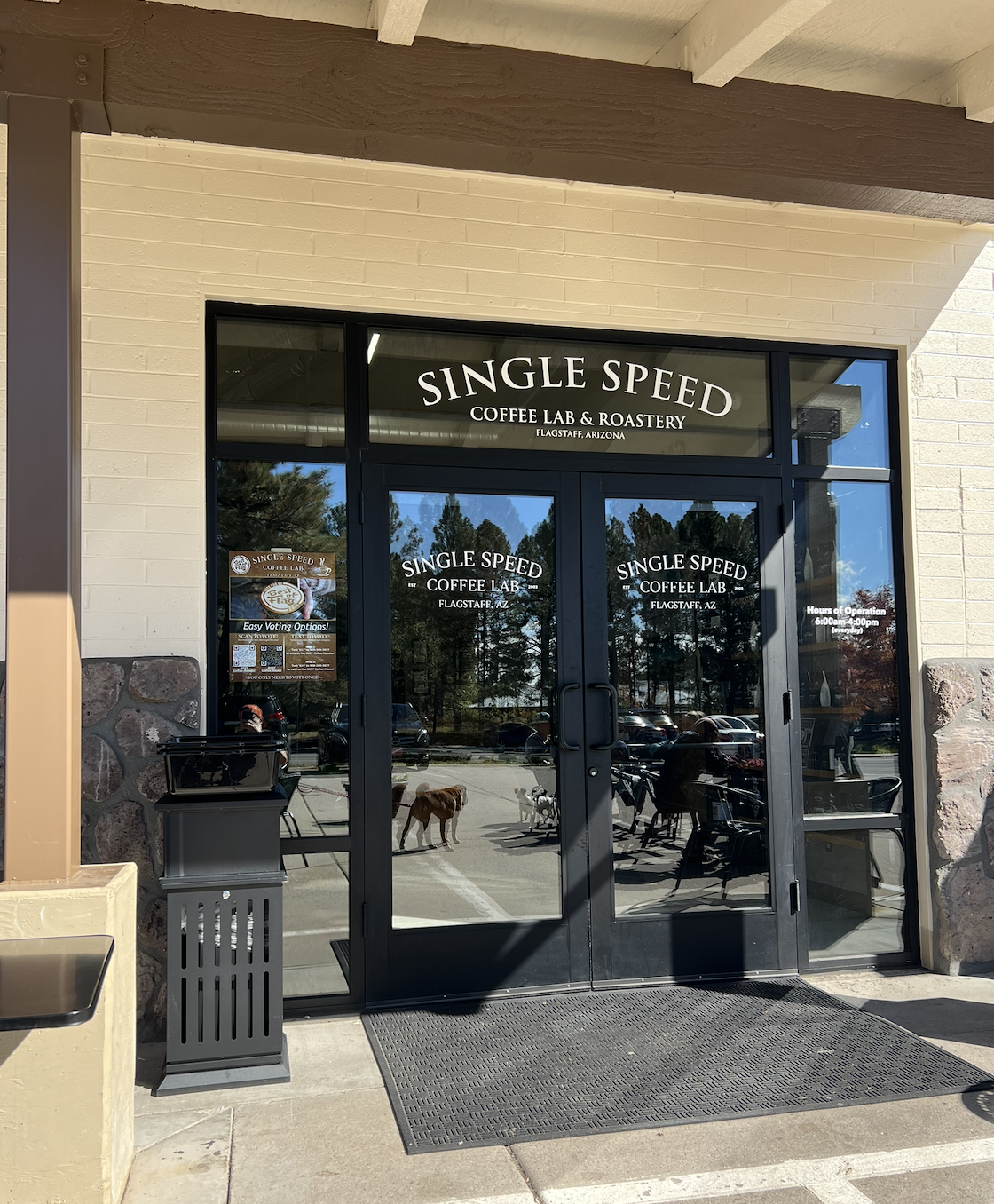 Found: Drivnig to downtown Flagstaff, AZ and saw community outside drinking coffe and poeple that looked like they just went camping